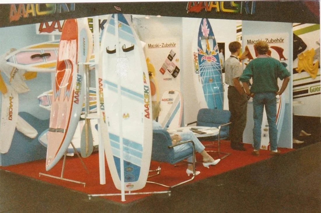 John and Denys took the brand global in 1984 - attending tradeshows in Europe, Australia, Israel and the States. By this stage John had stopped surfing and was to become a dedicated waveskier for the next 16 years. Riding his way to 3 World Championship titles in the Master's division (Cape Town '84, Hawaii '86 and Durban '94), as well as winning his division in SA Champs from '82 through to '91.