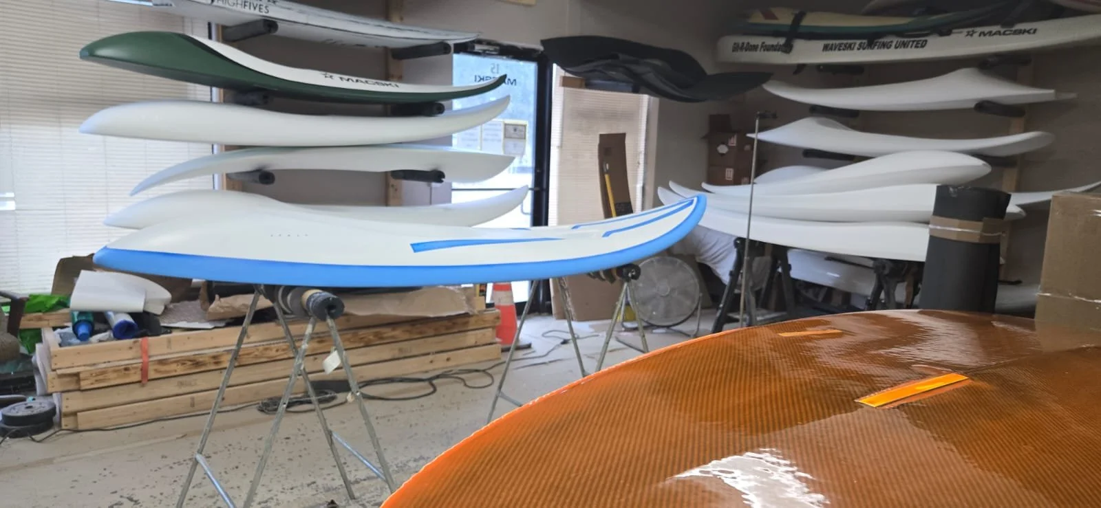 Macski can design a custom waveski based on your specific requirements and design criteria. We always welcome collaborative discussions between our master shaper and client, which will help determine the best custom waveski design based upon your riding ability and preferred surf conditions. Prices start at $1,850 (foot straps included). View our accessory add-ons.